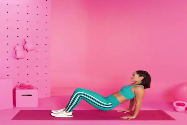 Wskazówka trenera: Pomyśl o pompce jak o ruchomej desce, więc staraj się przez cały czas utrzymywać neutralną pozycję kręgosłupa.