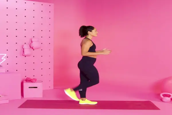 Jak: Zacznij od pozycji stojącej, rdzeń zaangażowany. Przysuń prawą piętę za siebie, aby dotknąć prawego pośladka. Opuść prawą stopę z powrotem na ziemię, a następnie powtórz ćwiczenie po przeciwnej stronie. Kontynuuj naprzemienne strony i przyspieszaj, aby uzyskać dodatkowe wyzwanie.