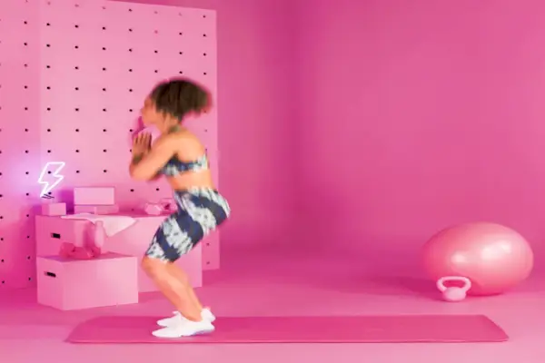 Jeśli jesteś gotowy, aby zrobić idealnego burpee: Zacznij stać ze złączonymi stopami, napnij pośladki, a następnie podskocz, trzymając palce u nóg skierowane. Po wylądowaniu wskocz z powrotem na pozycję wysokiej deski. Przytrzymaj przez chwilę, następnie odskocz do początku i ponownie wznieś się w powietrze. To jeden przedstawiciel.